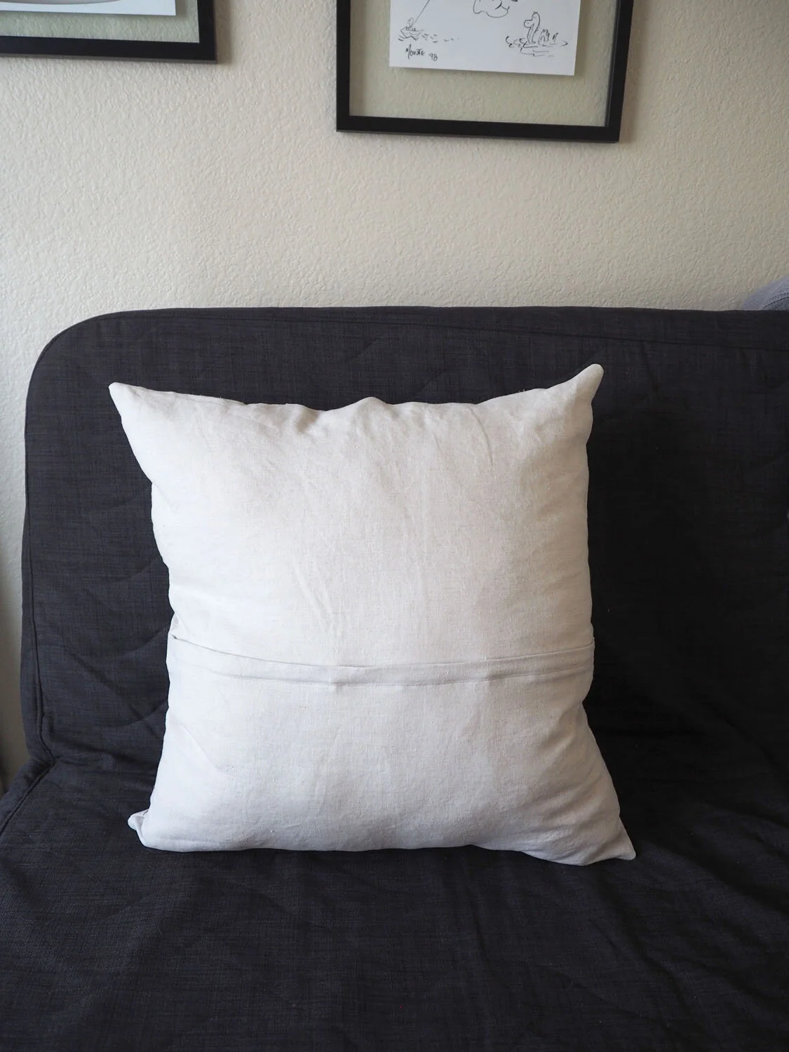 Pattern: Covered zipper pillow tutorial by Lisa Bongean (h/t to Gloria H. for sharing this with me). After disassembling the pillow, I repurposed the back panels and trimmed them to the dimensions recommended in the tutorial (15” x 26” - I think the linen relaxed a bit since I’d first made the pillow, so the front panel was 26” x 26” when I measured it).