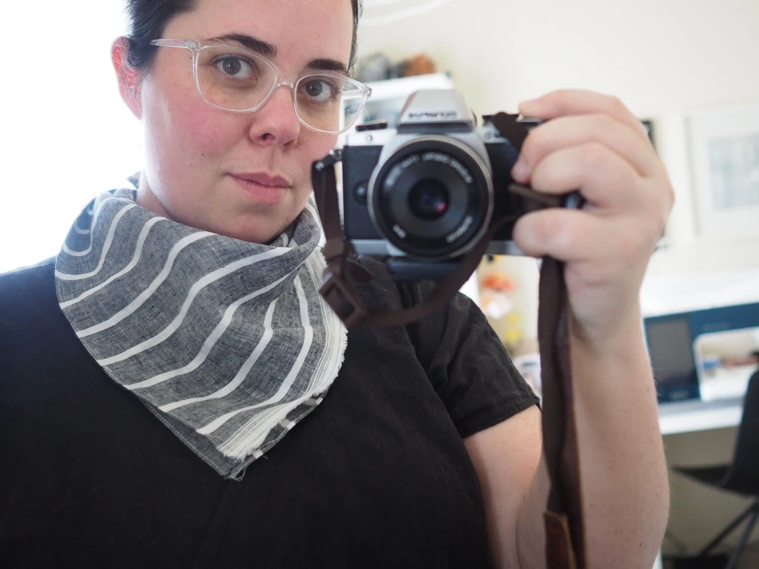 Pattern/Technique: Self-drafted, cut 24"x24" square of scrap linen. Used a rolled hem foot to finish the edges with a narrow rolled hem.