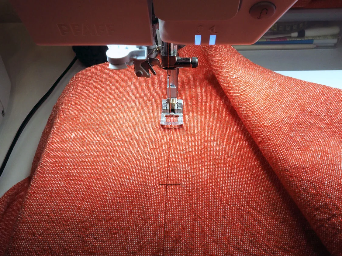 Materials: Used 2.5 yds of Kaufman Essex Yarn-Dyed Homespun in Flame (12 inches left). Stitched with Aurifil 2255 50 wt, using 70/10 universal needle.