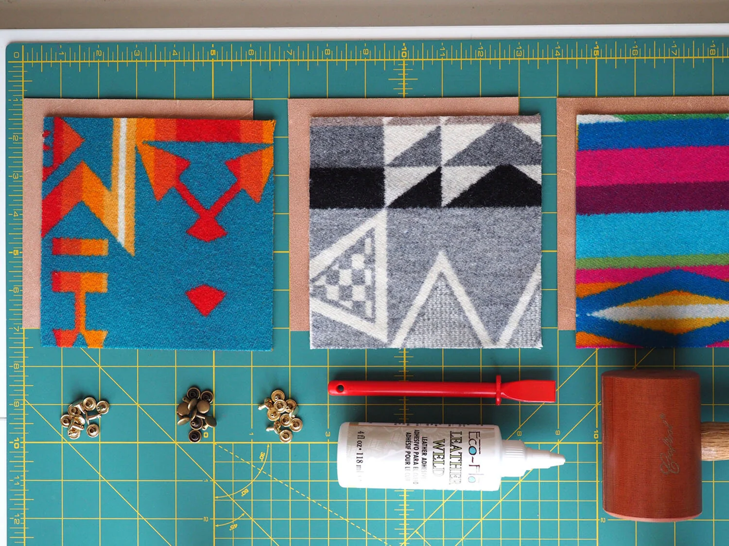 • 5x5 inch piece of 2-3 oz vegetable tanned leather (punched with 3/32" drive punch at 1" x 5/8" at each of the 4 corners)